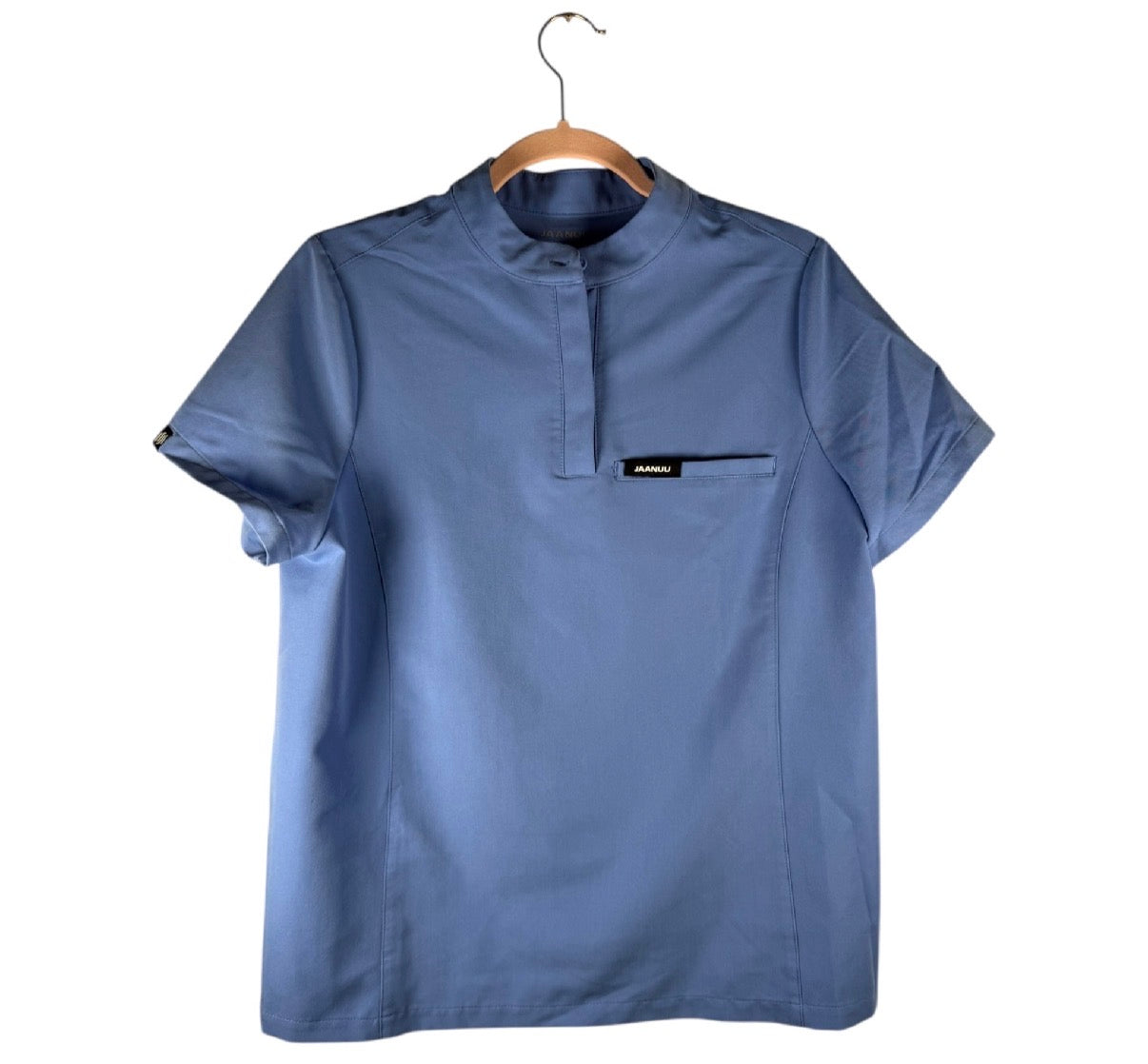 Jaanuu Savi scrub top with straight leg regular rise pants.
