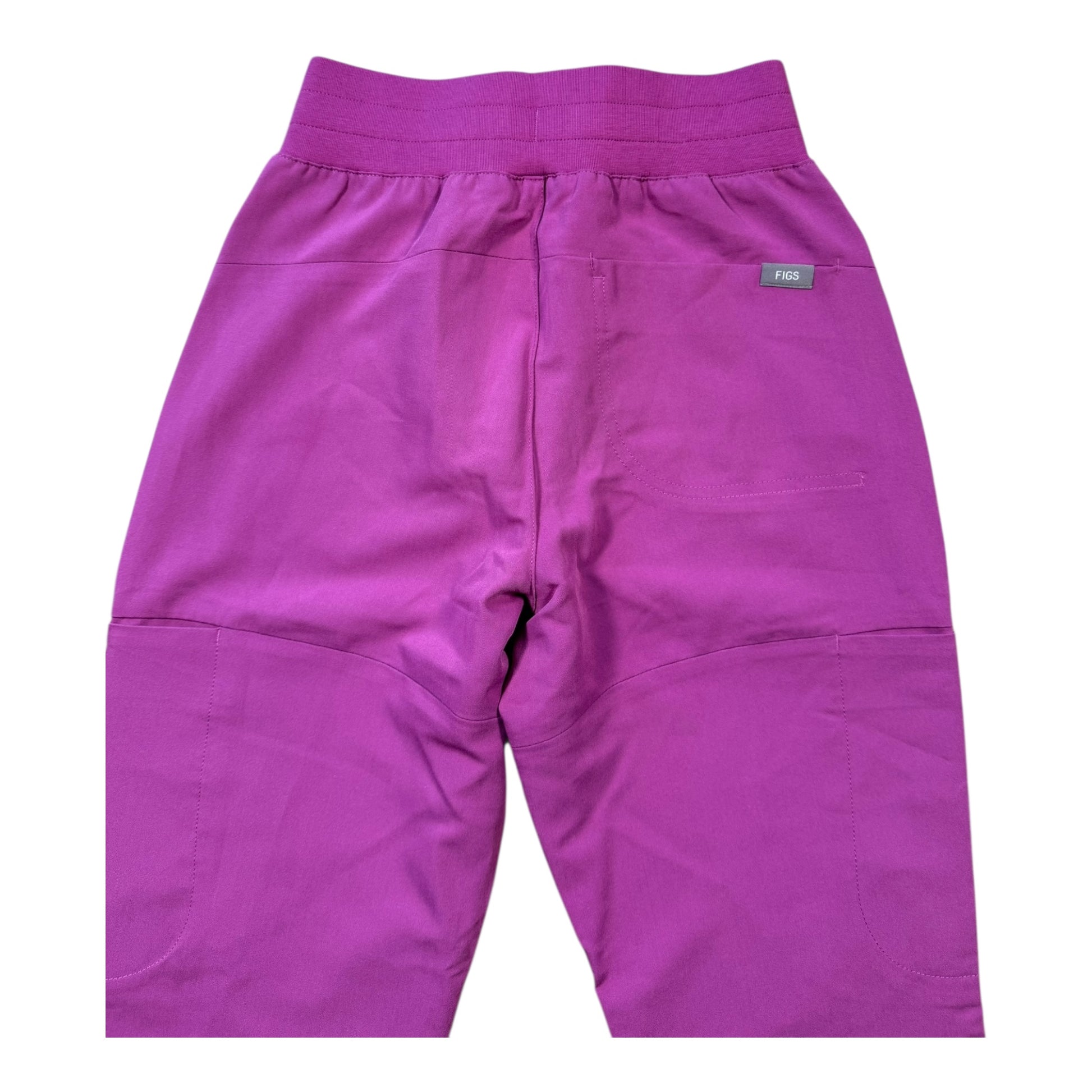 Limited edition dark magenta fig scrub pants with jogger-style bottom